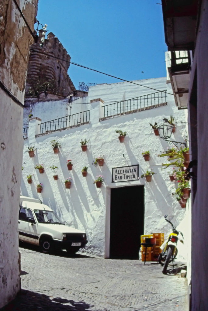 都市名であるフロンテーラが国境の意味を示す通り、国境要塞都市である。グアダレーテ川を見下ろす断崖の上の街で、白壁の家並み、花鉢が青空に美しく映えていた。