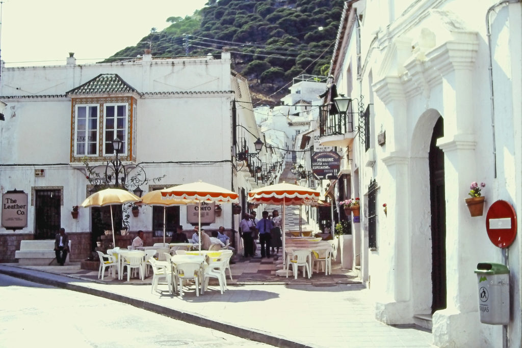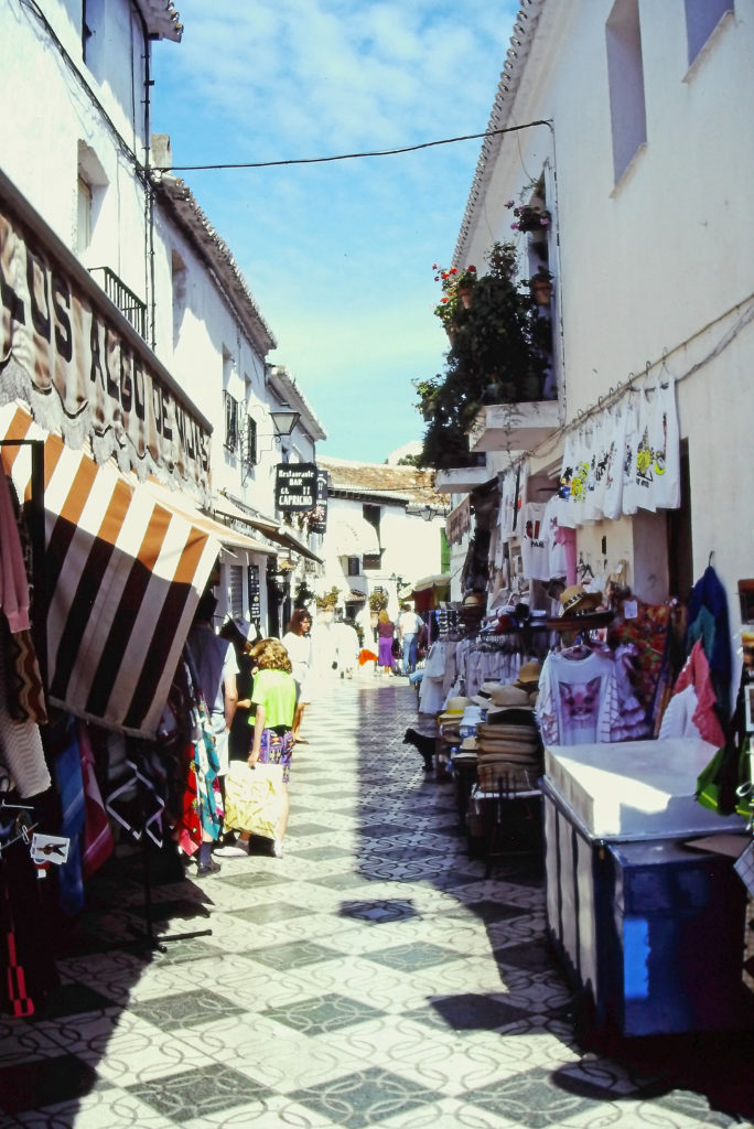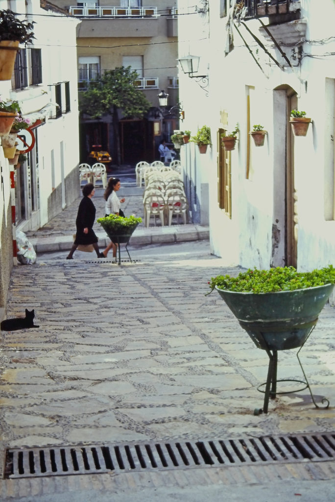 白壁・花鉢・鋳鉄製の手すり・雨樋のない軒・斜面、典型的なスペインの家並みであった。